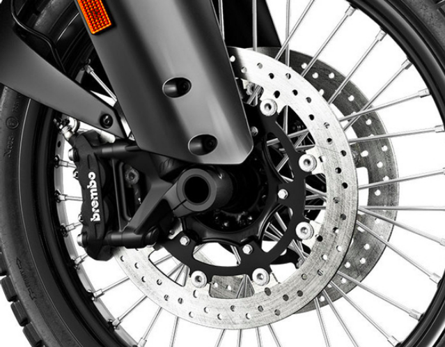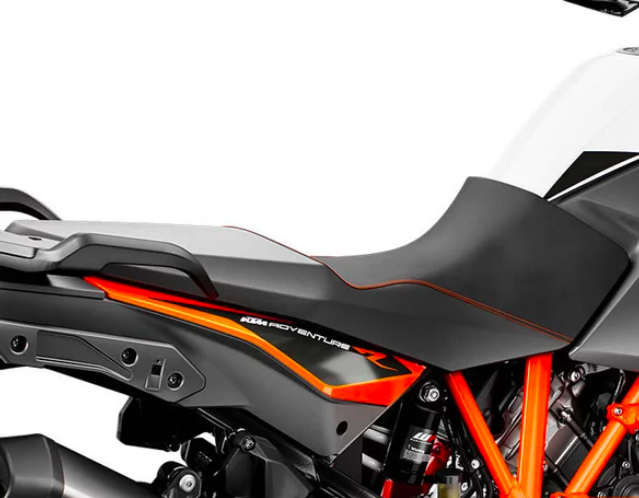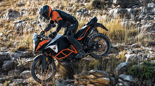 The bikes share a few goodies. Such as a windshield and an alloy handlebar that can be mounted in different positions to suit riders of various sizes. The same adjustability can be found in the seat and footpegs. The Adventure is fitted with a WP shock that can be adjusted for preload and rebound damping, and allows for 190mm of travel. In the R, similar type of shocks can be adjusted at both ends and have 220mm of travel. Among the options that can be ticked is luggage mounts on the sides of the bike.