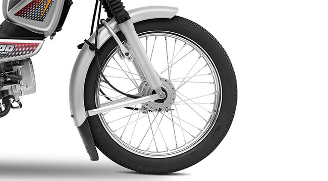 You do get basic safety with the TVS XL100’s 80mm drum brakes at the front and a 110mm drum brakes at the rear for that sufficient braking power.
