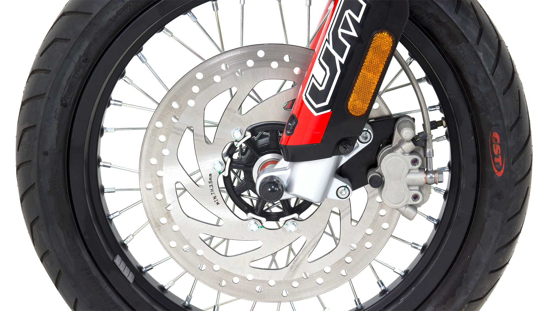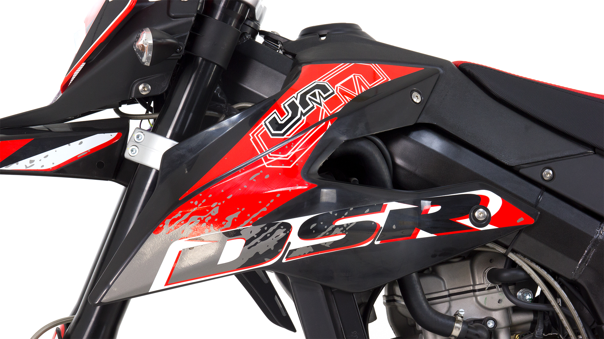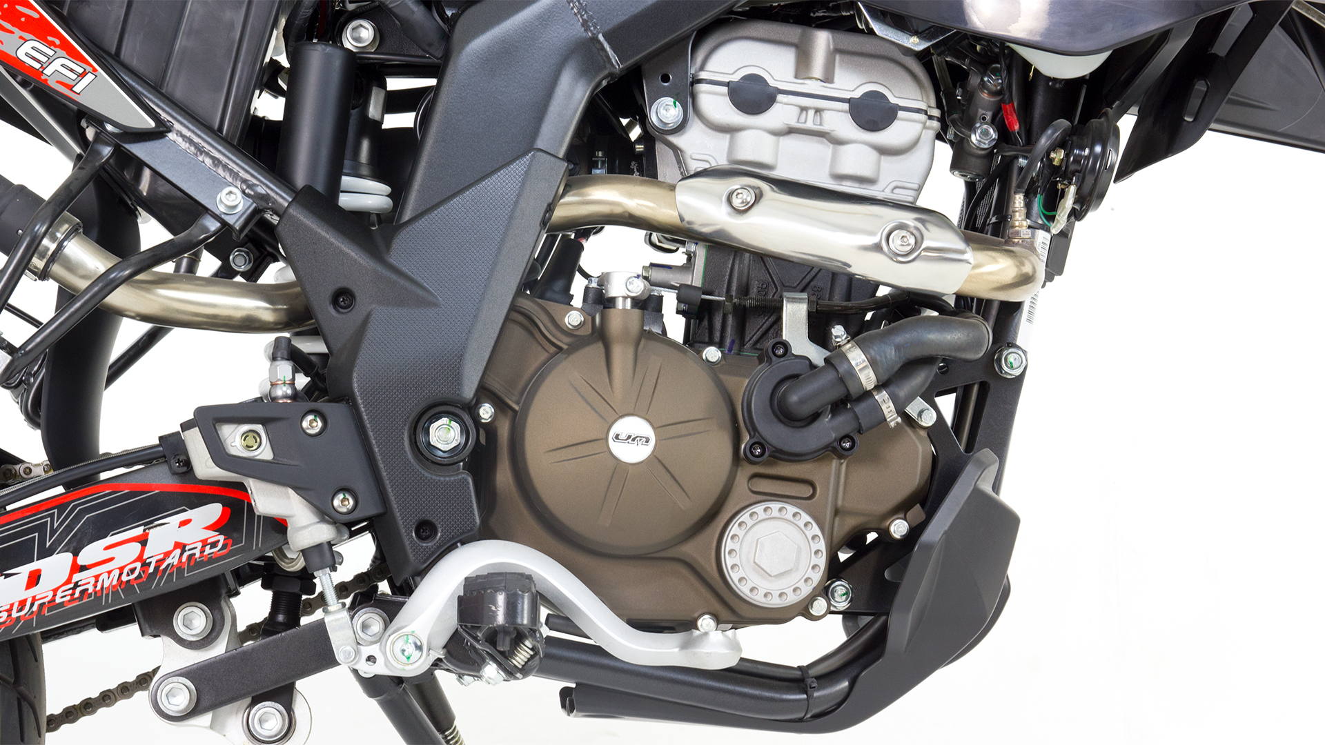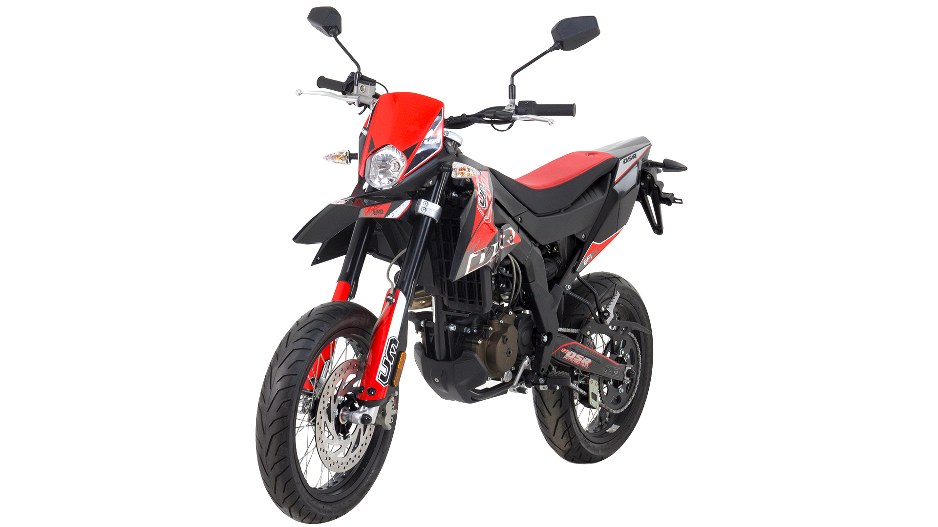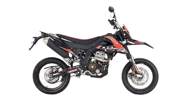 The UM DSR SM is a supermotard bike offering of the brand promises riding pleasure not only in rough terrain, but in the smooth stuff as well. It comes with a 125cc engine and color options are red,orange, and black.
